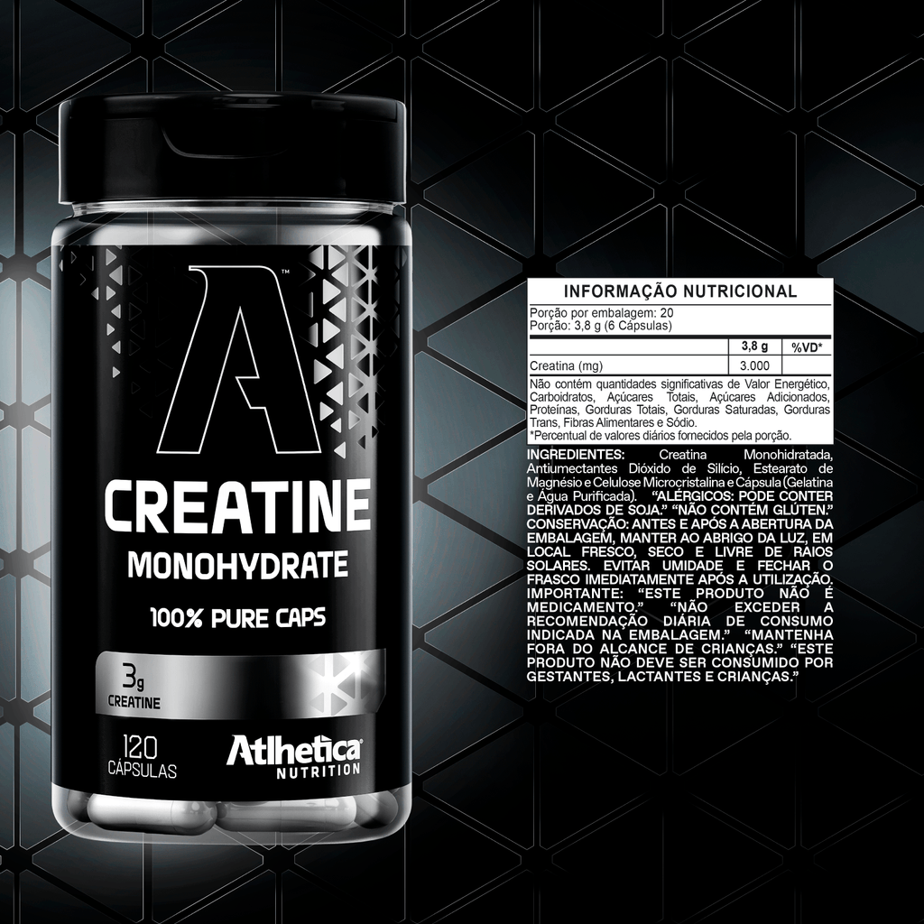 CREATINE MONOHYDRATE CAPS é um Suplemento Alimentar de Creatina em Cápsulas. Contém 3,0g de Creatina Monoidratada na porção de 6 cápsulas.